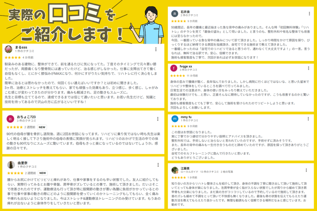 リハトレ整体 宮ノ陣店で、リハビリ・整体を実際に体験されたお客様の生の声をお届けします。