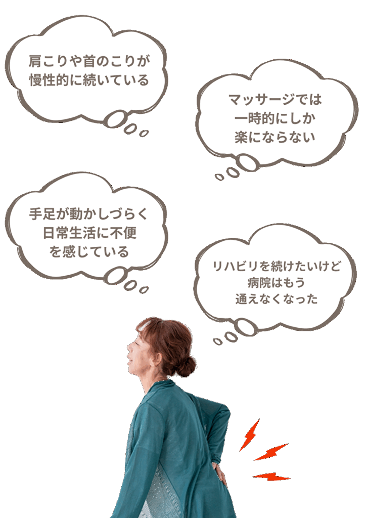 保険制度に縛られない、あなたのためだけのリハビリで改善を目指します!