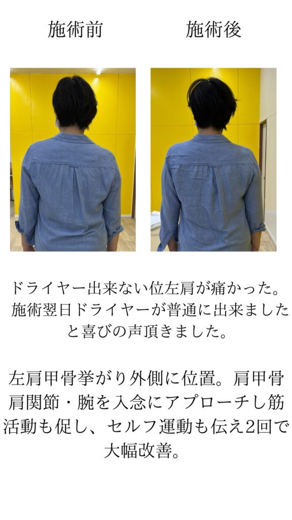 五十肩は時間が経つほど固まりやすく、改善までに時間がかかります。